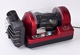 The Gene Cafe home coffee roaster offers a large capacity, intuitive, easy to use controls, and quiet operation. With complete control over both time and temperature that will please the most advanced home coffee roasting hobbiests, the controls and instructions are so easy that beginners can produce professional results the very first day. The clear roast chamber makes it very easy to view the roasting process, a must have feature that eliminates burnt or under roasted coffee. The Gene Cafe can hold up to 10 oz. of unroasted green coffee which will yield up to an 8 oz. batch of fully roasted coffee. The thoughtfully integrated safety features (that are lacking in most home roasters) include auto shutoff, overheat sensors, and a clear safety cover to prevent burnt fingers. This roaster delivers what you would expect of a higher priced coffee roaster: excellent roast quality, a durable machine built to last, a good warranty with US based support, and easy to use controls. As with most large capacity home roasting machines, a lot of smoke is produced during the roast. Perfect for a large household of thirsty coffee drinkers!